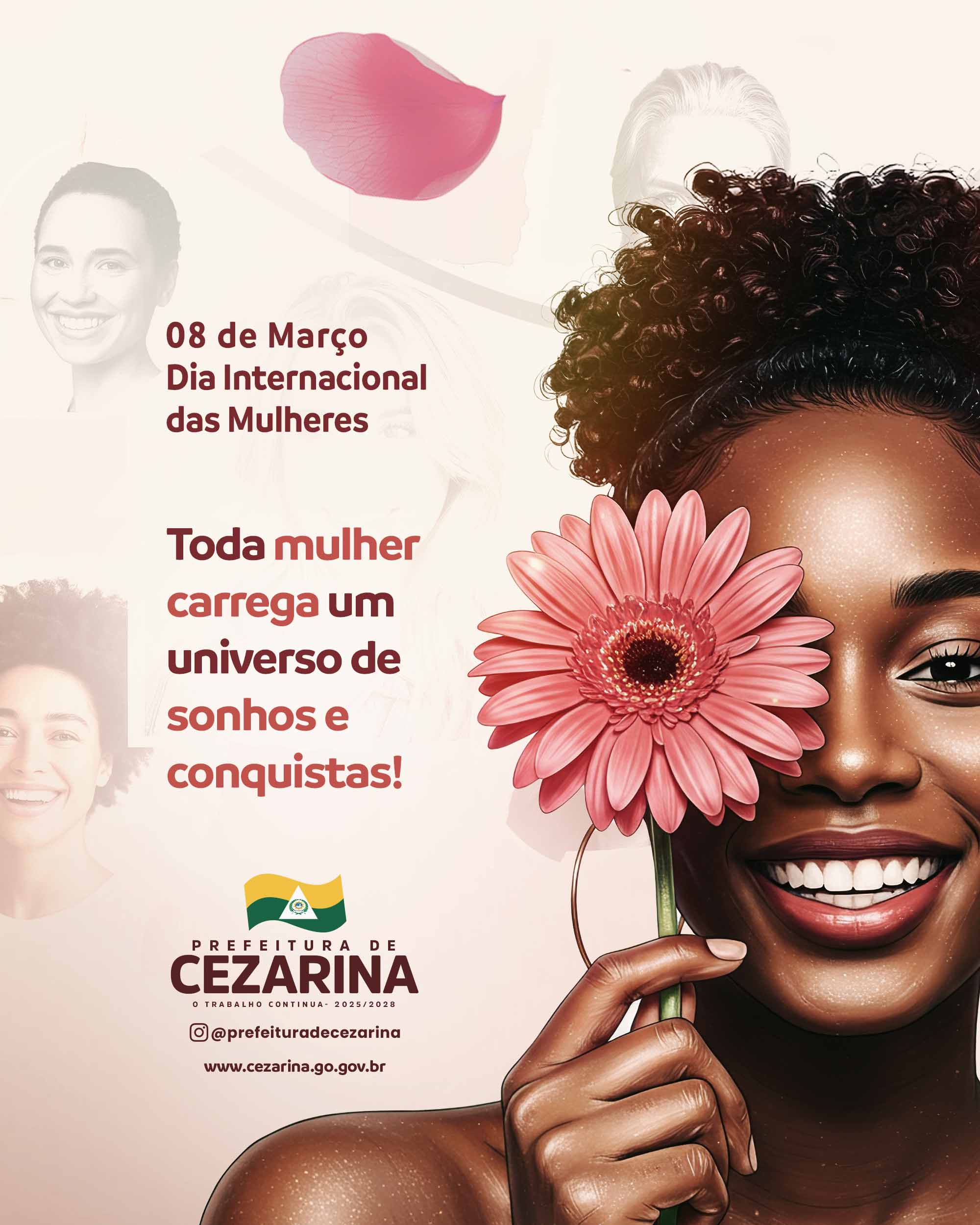 Neste domingo, 08 de março, a Prefeitura de Cezarina celebra o Dia Internacional da Mulher, uma data que transcende as homenagens e convida à reflexão sobre as conquistas, a força e o papel fundamental da mulher na construção de uma sociedade mais justa e próspera.