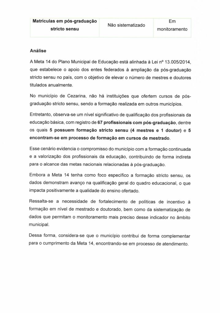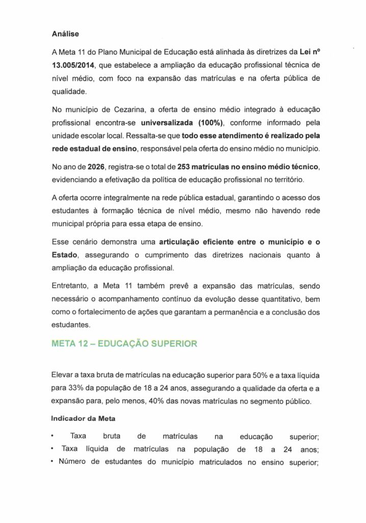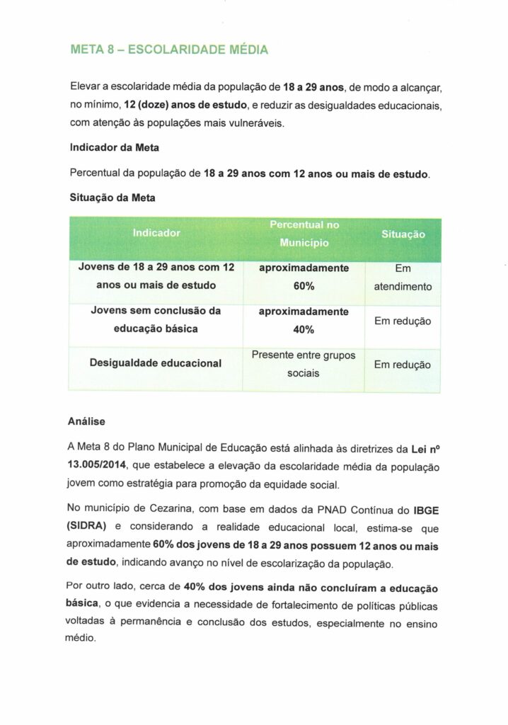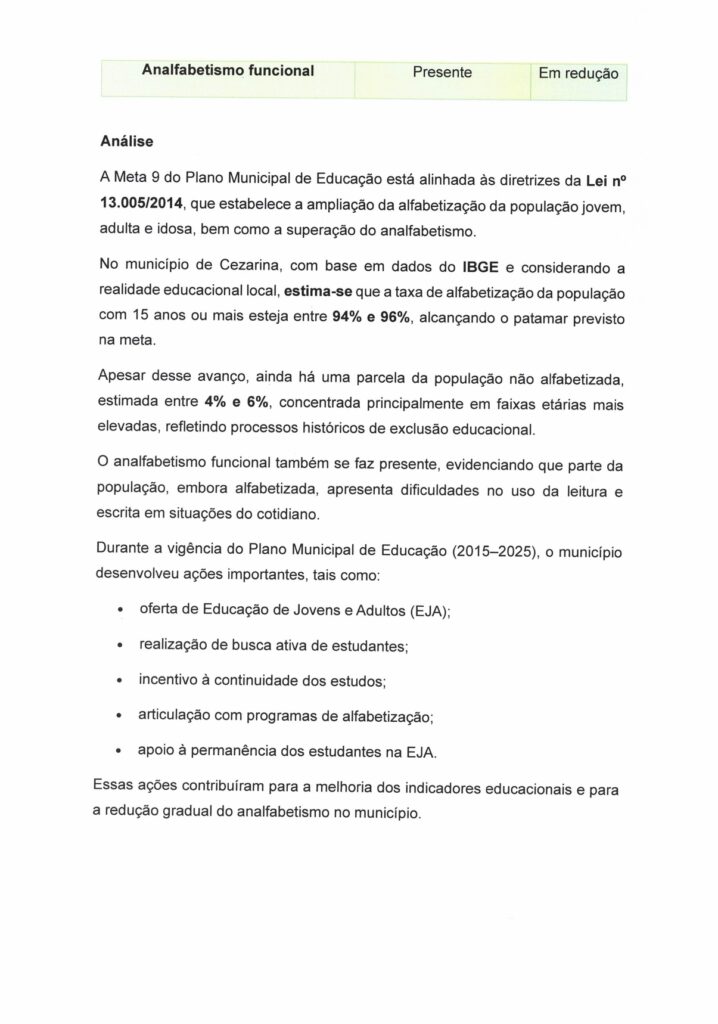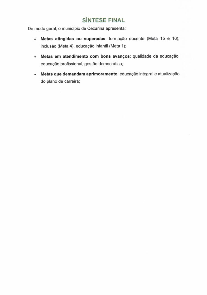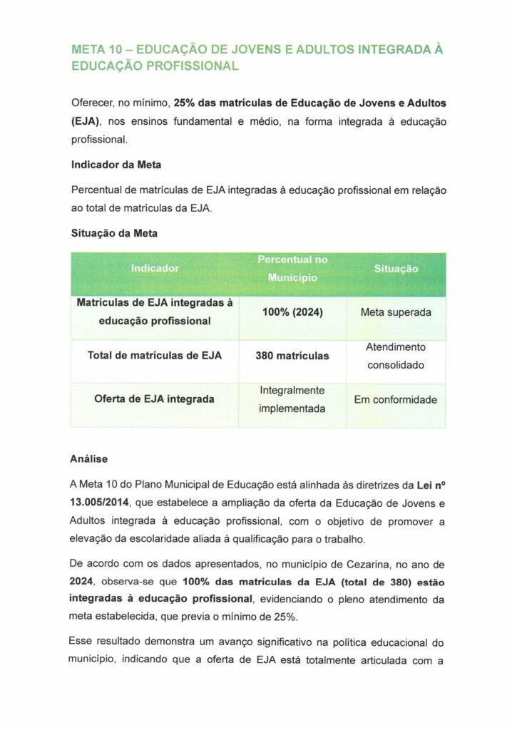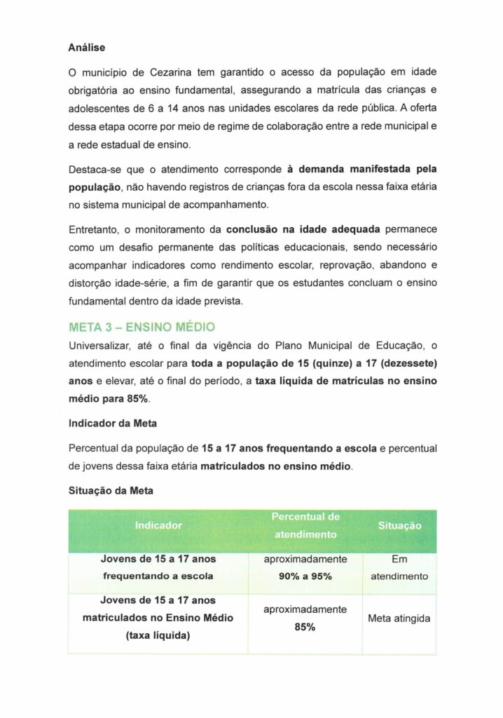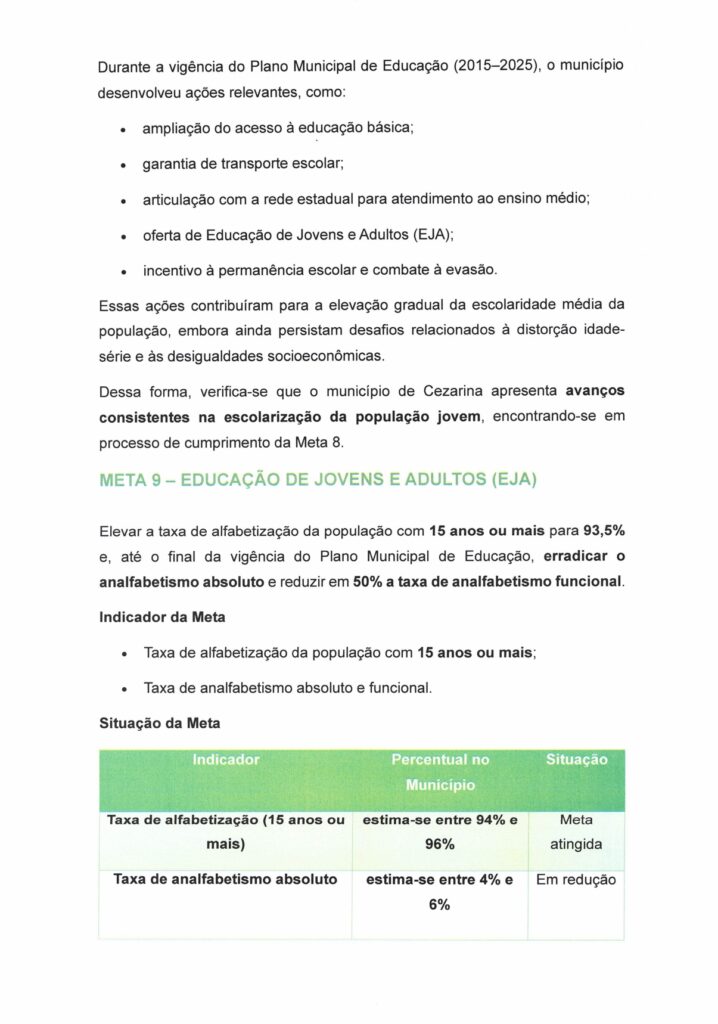 A Prefeitura de Cezarina, por meio da Secretaria Municipal de Educação, apresenta o Relatório Final de Monitoramento do Plano Municipal de Educação (PME) 2015-2025. O documento revela que nossa cidade atingiu resultados históricos e segue transformando o futuro das nossas crianças e jovens!.