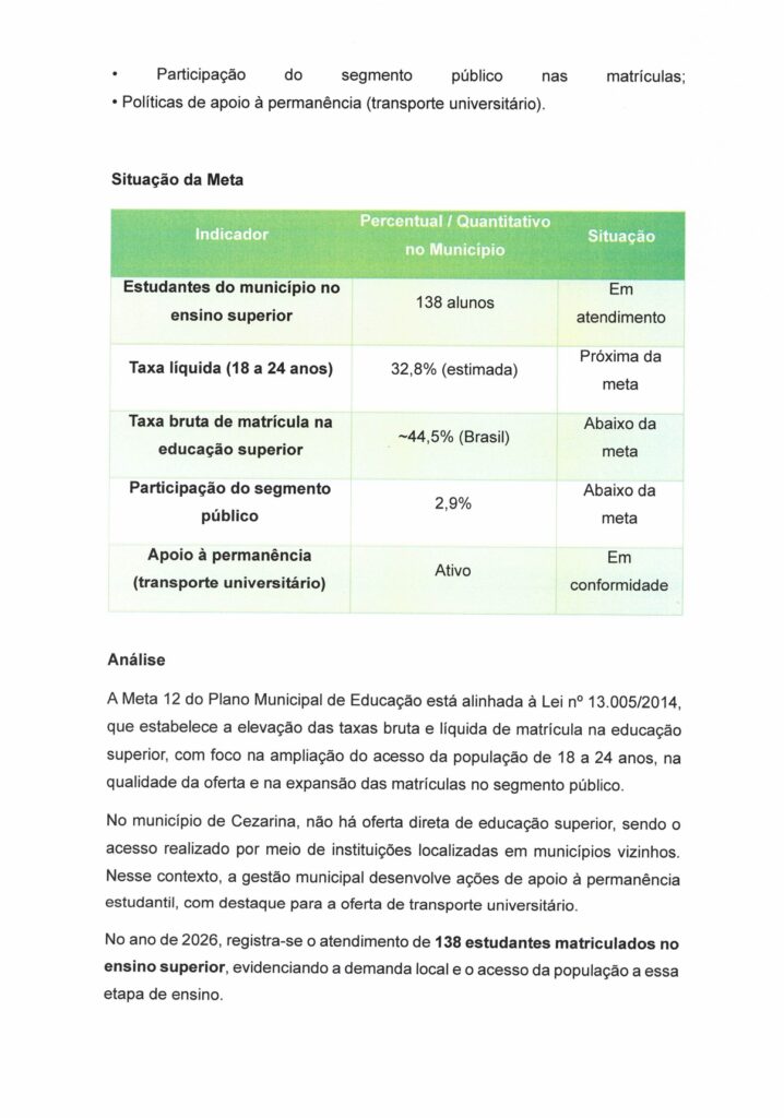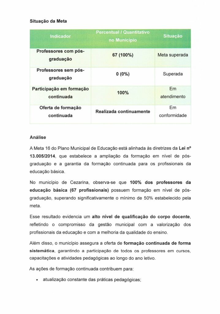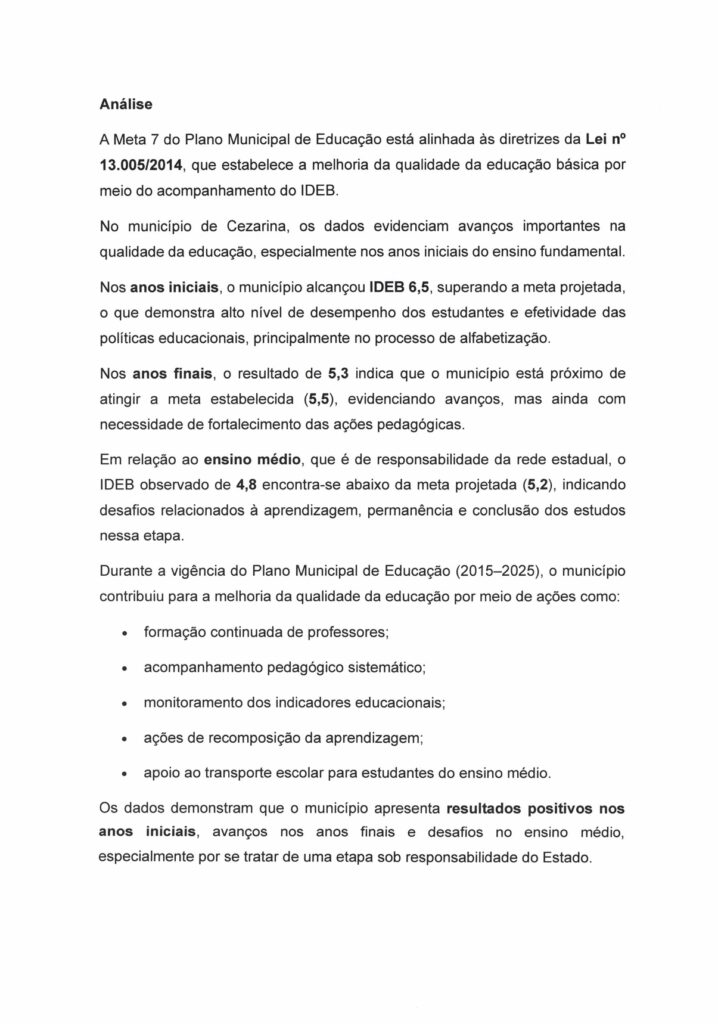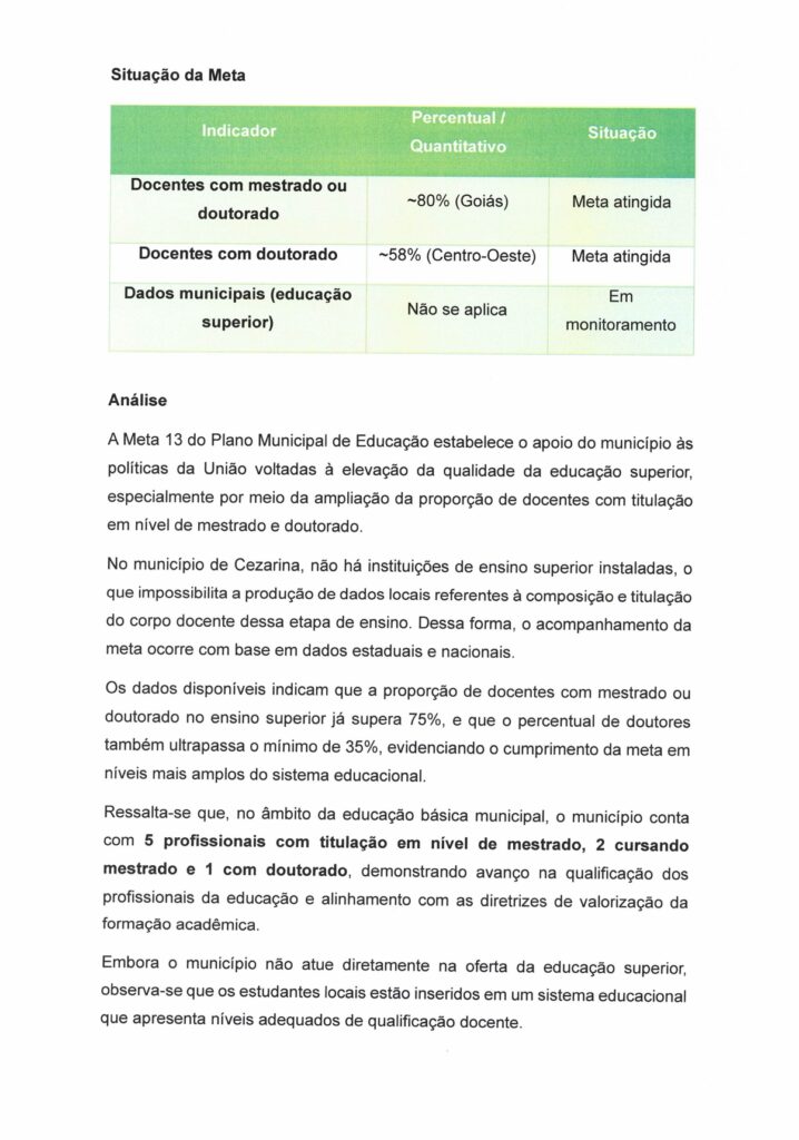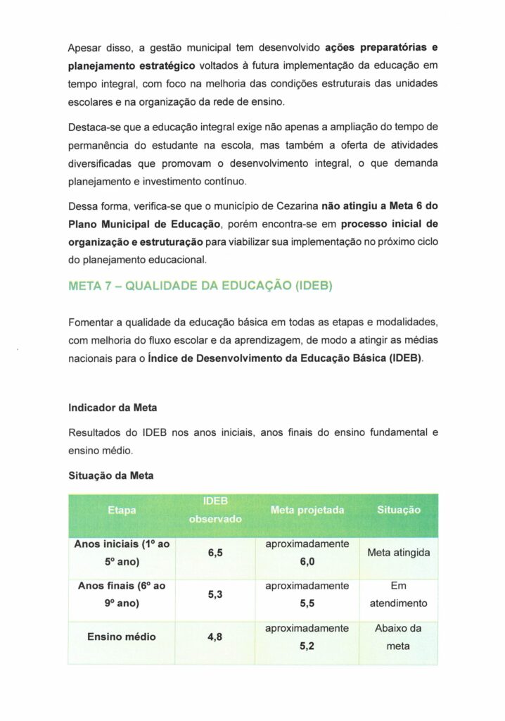O relatório também aponta os próximos desafios, como a ampliação da educação em tempo integral e a atualização do plano de carreira, que já estão em nosso planejamento estratégico. Cezarina segue avançando com transparência, compromisso e uma educação que é referência!