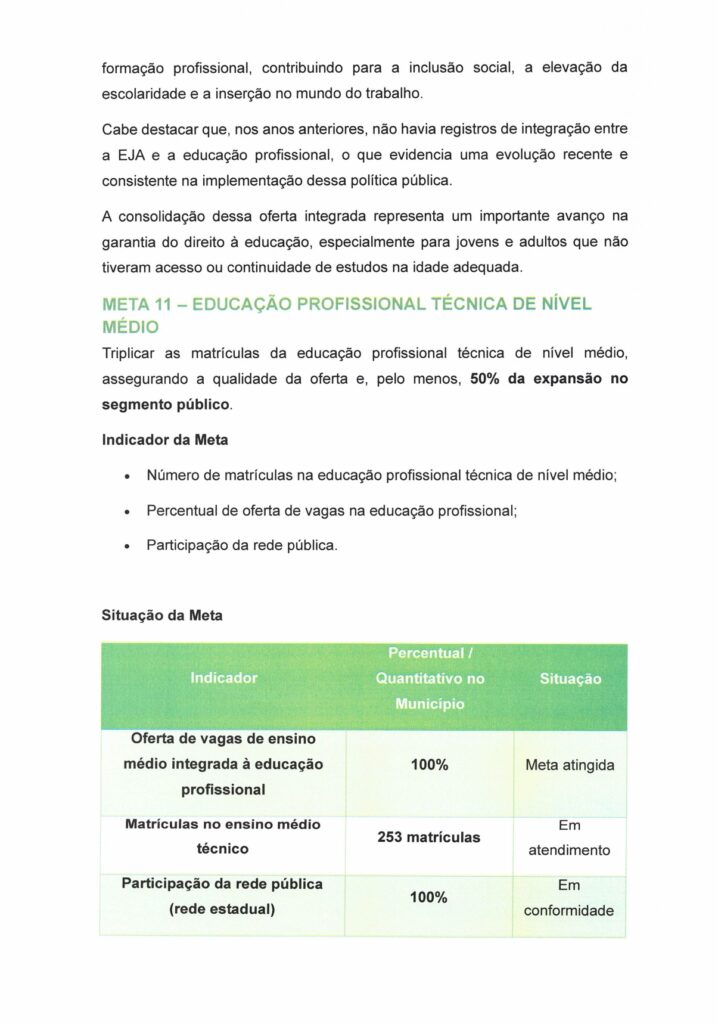- Educação Infantil: Meta de universalização da pré-escola (4 e 5 anos) atingida com 100% de atendimento!.