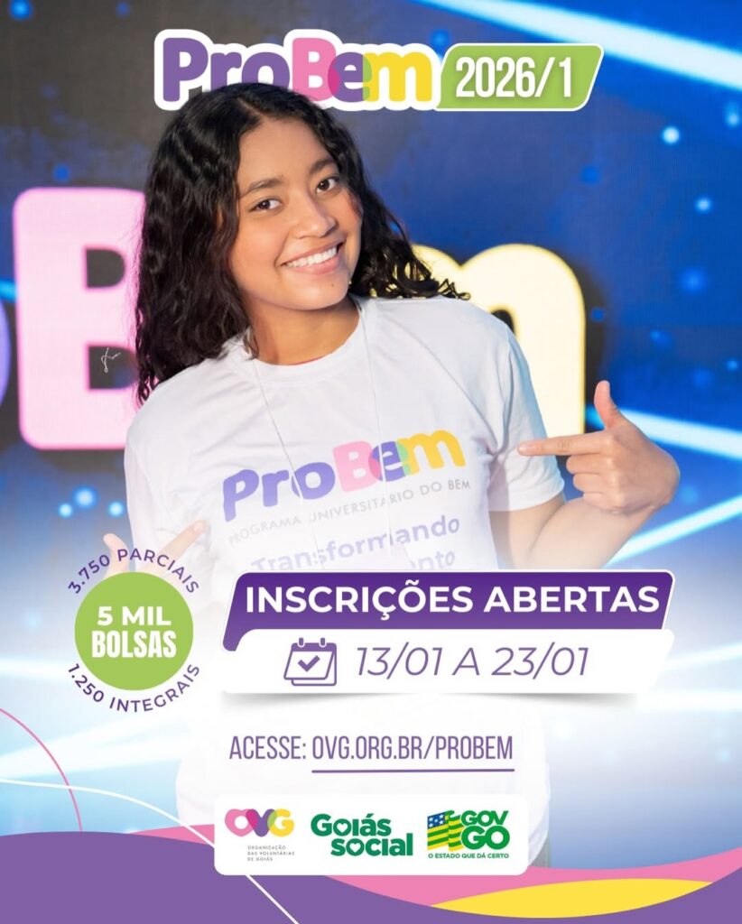 O Governo de Goiás, por meio do Goiás Social e da OVG, está ofertando 5 mil bolsas de estudo para estudantes do ensino superior, sendo 3.750 parciais e 1.250 integrais.